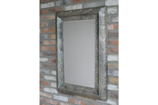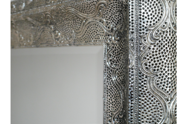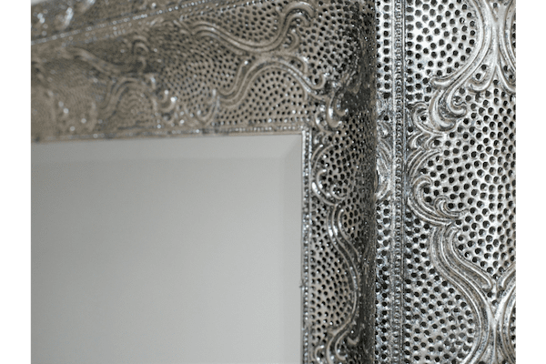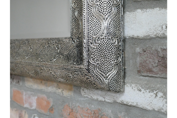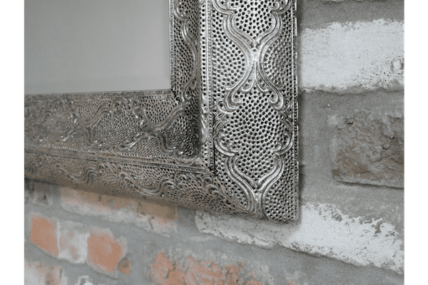 Finished in an antiqued silver this mirror has a delicate touch of exoticism.This lovely moroccan style mirror is the luxurious touch you need in your home.