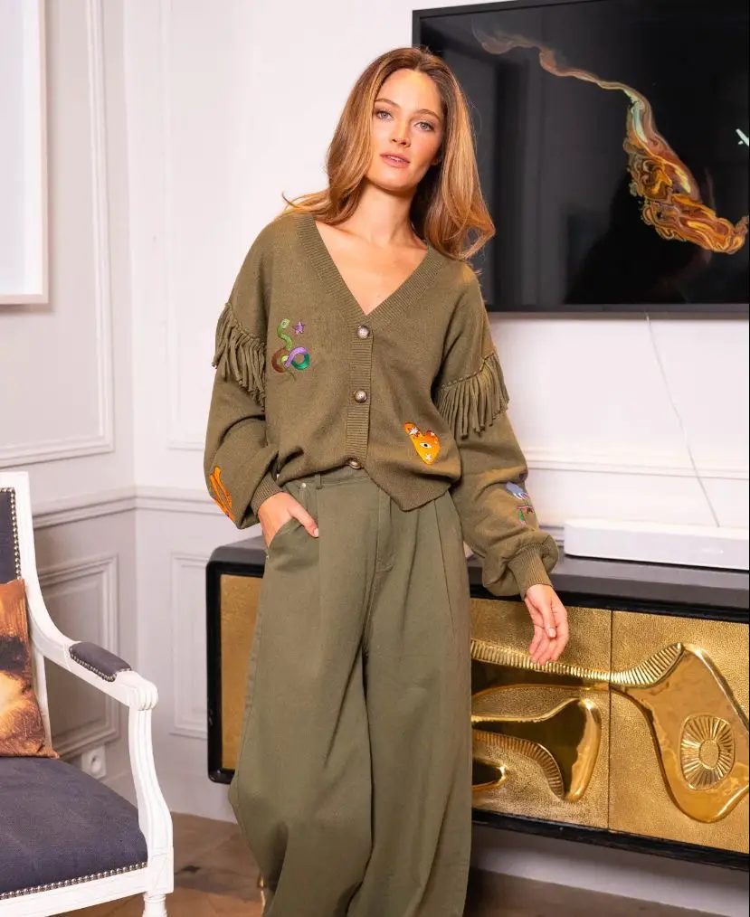 Mystic Tassel Cardigan in Khaki