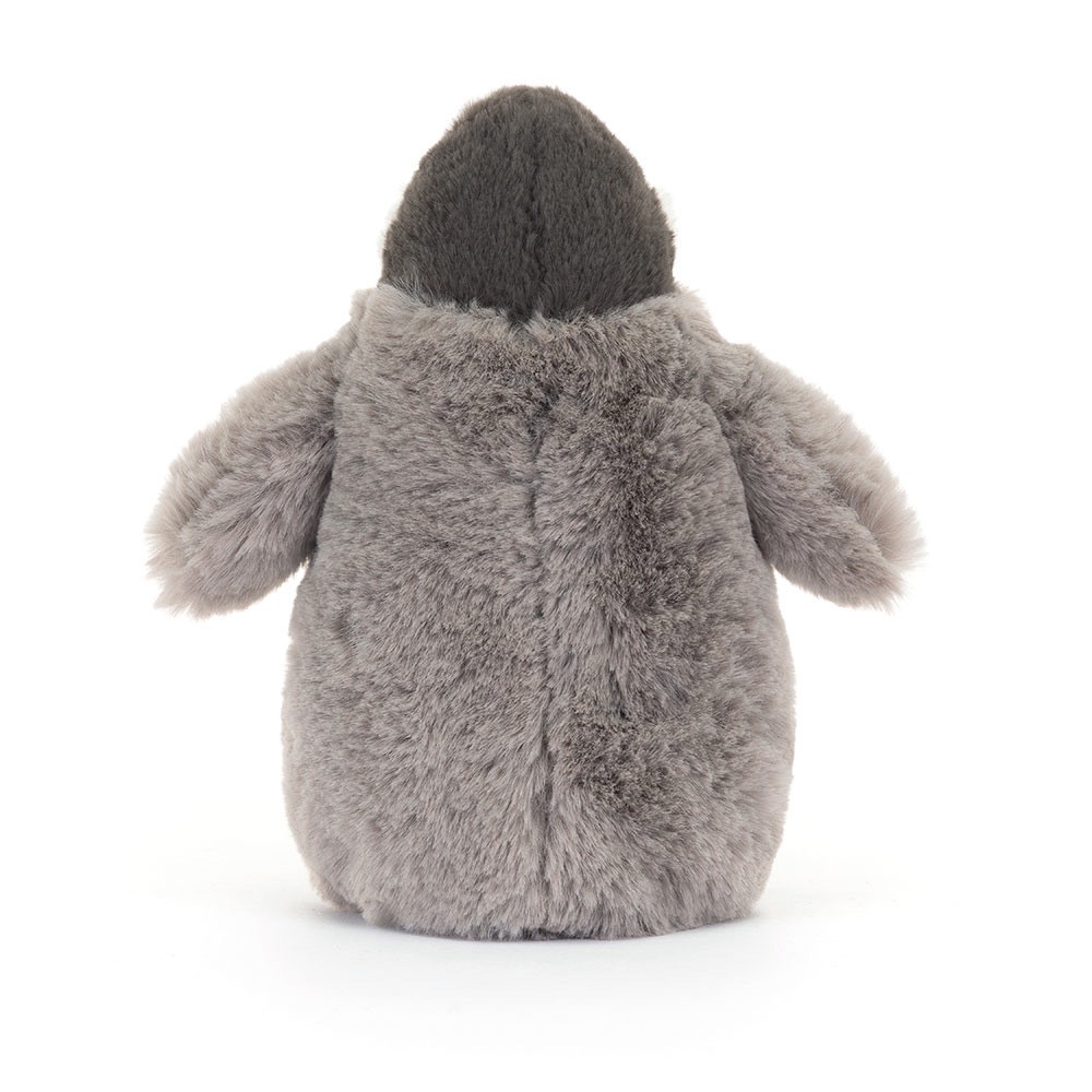 Perky little Percy Penguin will toddle and waddle right into your arms! A squat little sweetie, this fluffy grey chick still has his baby feathers! With supercute markings in charcoal and cream, he’s a proper little emperor! He’s always shaking those suedey-soft feet. They help him balance on the slip-slidey ice!