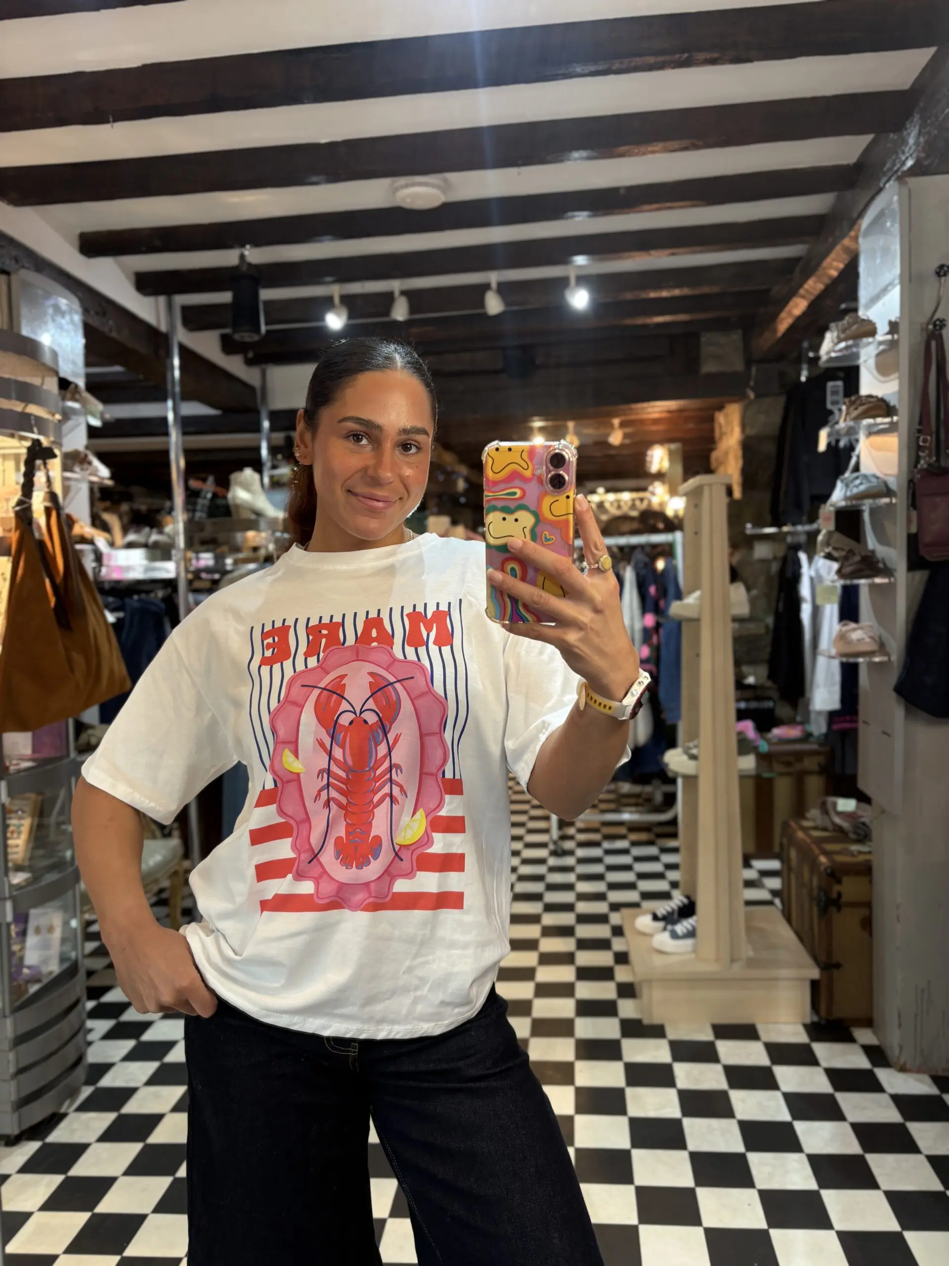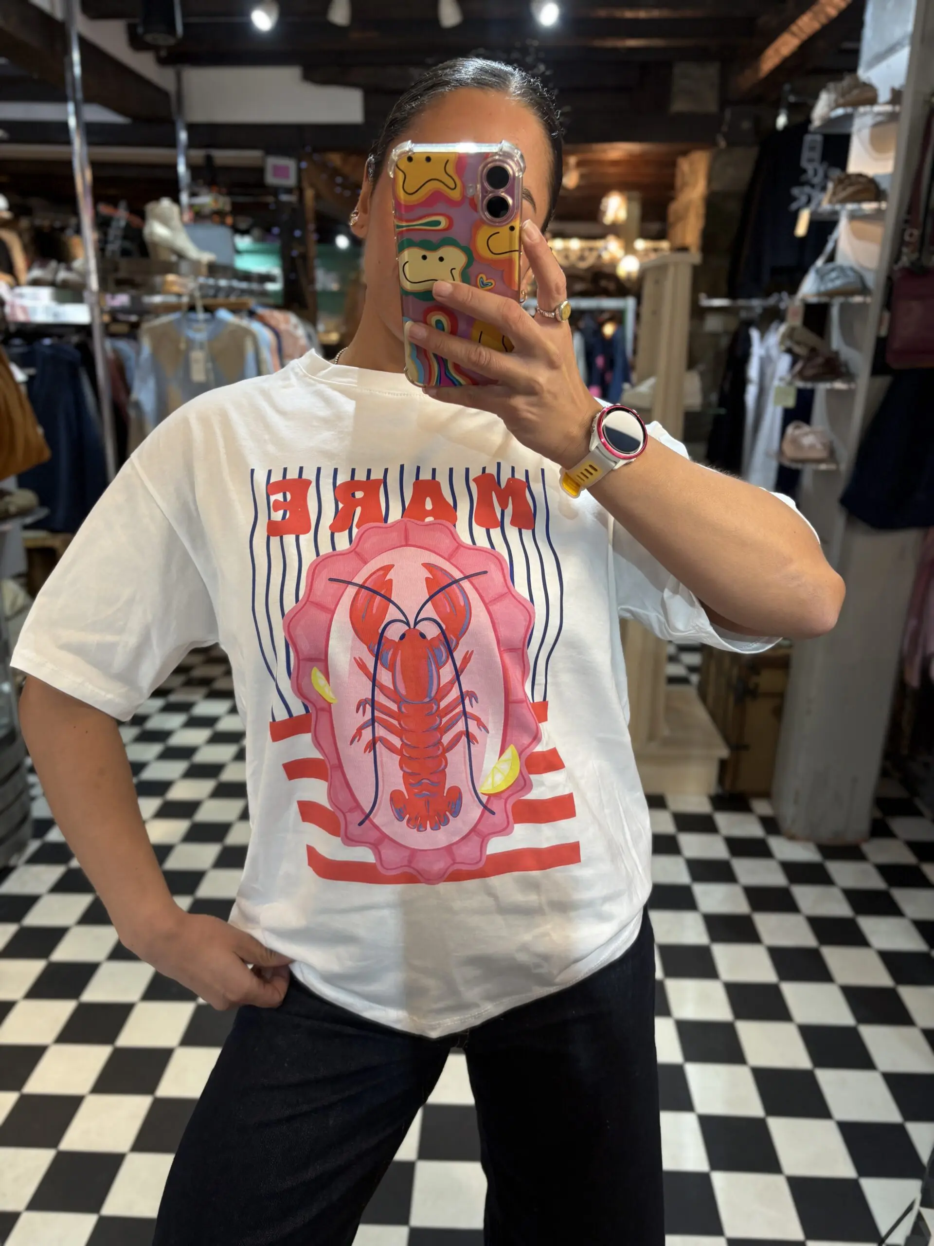 Super cute and comfy new oversize style t shirt with pink lobster print. Perfect for those warmer summer days.