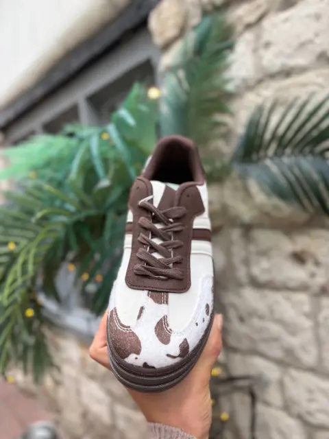 Our beloved platform trainer style in a fabulous and fun new cow print.