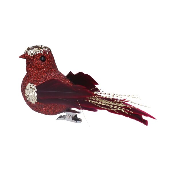 / Polyester Clip-on Dec 4cm – Red Sparkle/Feather Bird