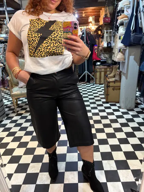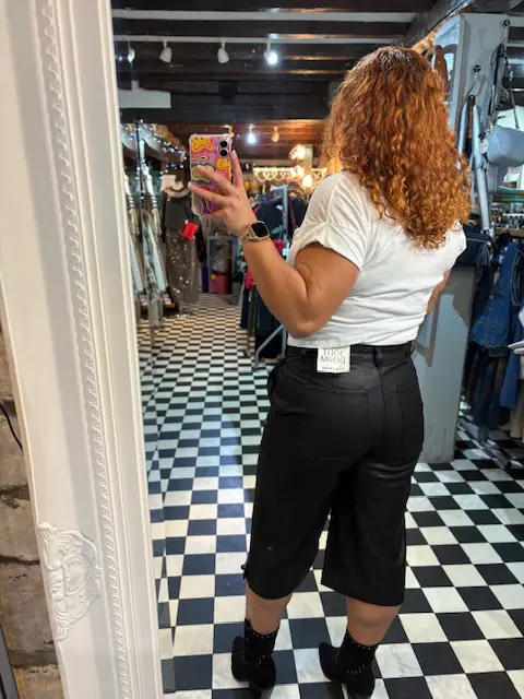 These faux leather style culottes are an awesome wardrobe item. Be unique with these and style them any way you wish. We love the jort trend and what better way to add to it than with PU