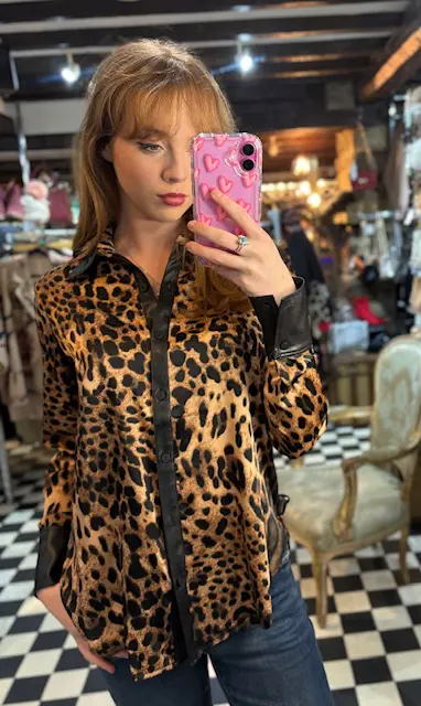 PU Leopard Print Shirt
