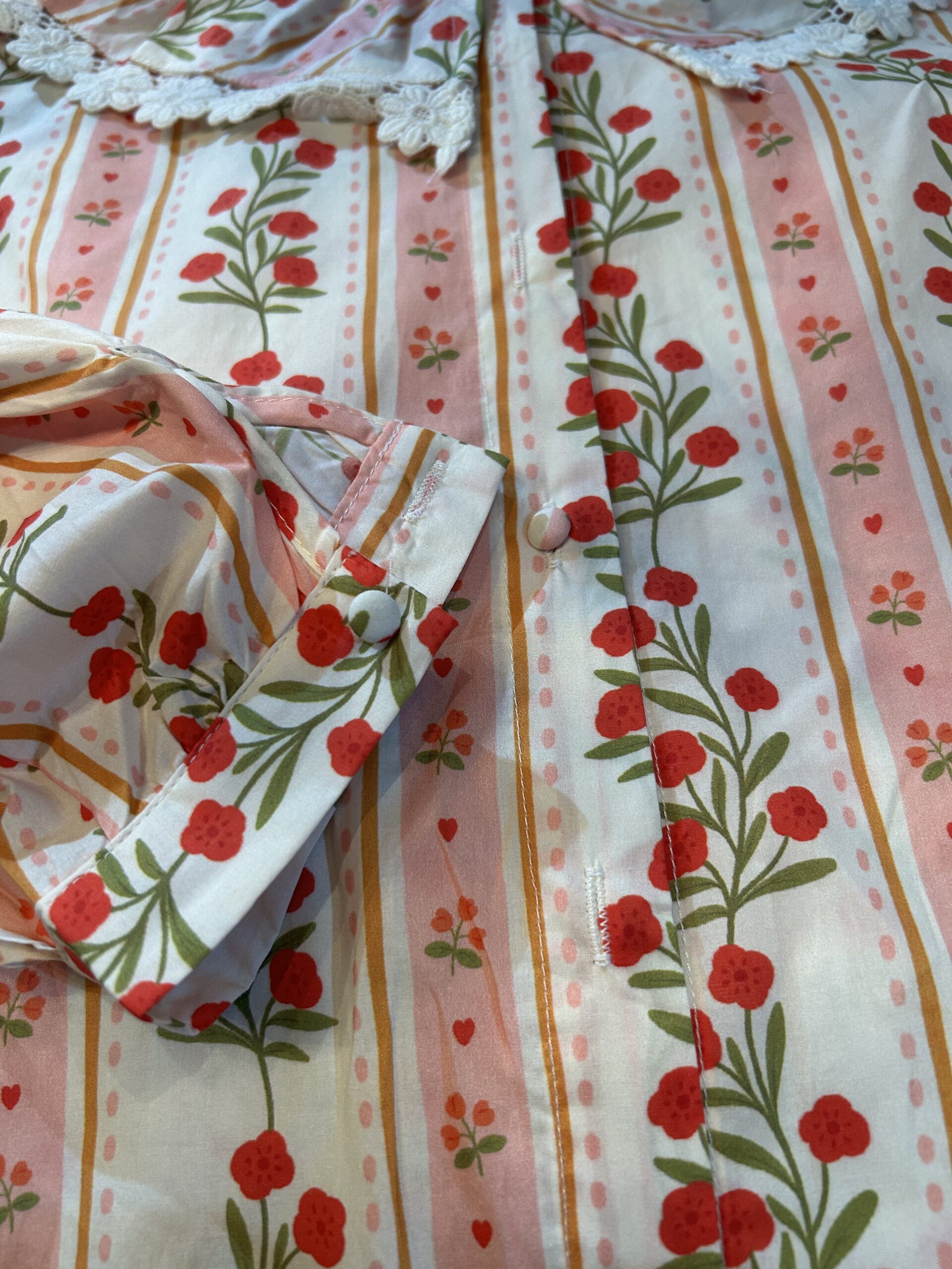 little covered buttons through the front and on the cuffs