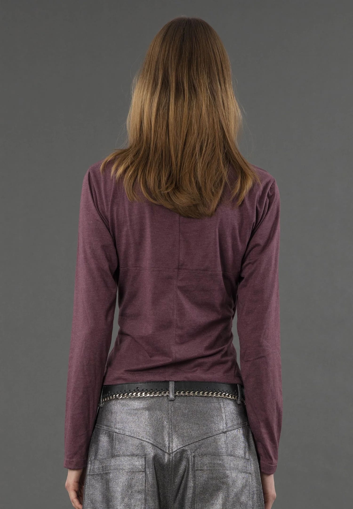 The Time top is a fitted tee in dark red featuring drape detailing at the front hem, adding a twist to this easy basic. With a regular fit, crew neckline, and long sleeves, it’s hip-length and made from soft cotton jersey. A versatile everyday wardrobe essential. The model wears a size UK 10. Length from the top: 63 cm