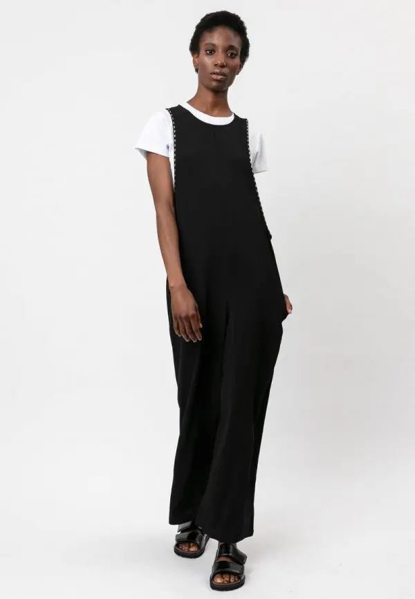 Look effortlessly cool in our outlook jumpsuit made in textured crepe. This easy-fit style features a round neck, pockets, wide legs and low armholes with stud detailing. Wear yours with a t-shirt or layered with your favourite jumper.