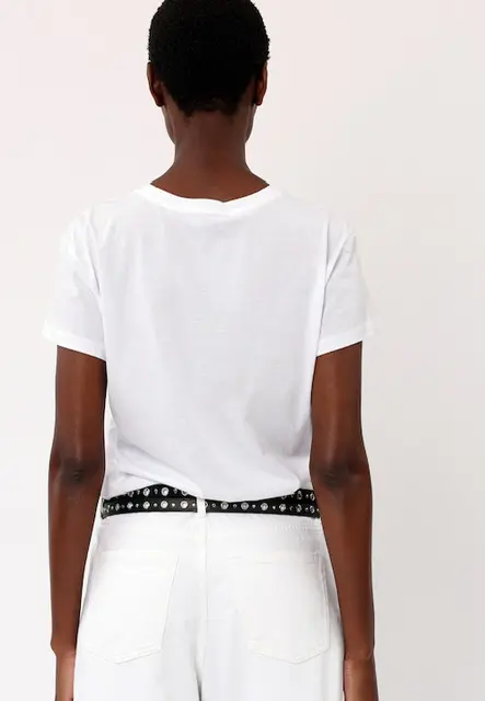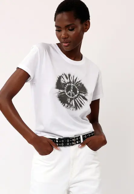 Every wardrobe needs a graphic tee and the Rebel tee in white with the black peace graphic is a great update for this season. This boyfriend fit style features a crew neck and short sleeves and is made in soft cotton jersey. Wear with a printed maxi dress or tailored trousers and trainers for an easy off-duty look. The model wears a size S. Made in 100% natural fibers.