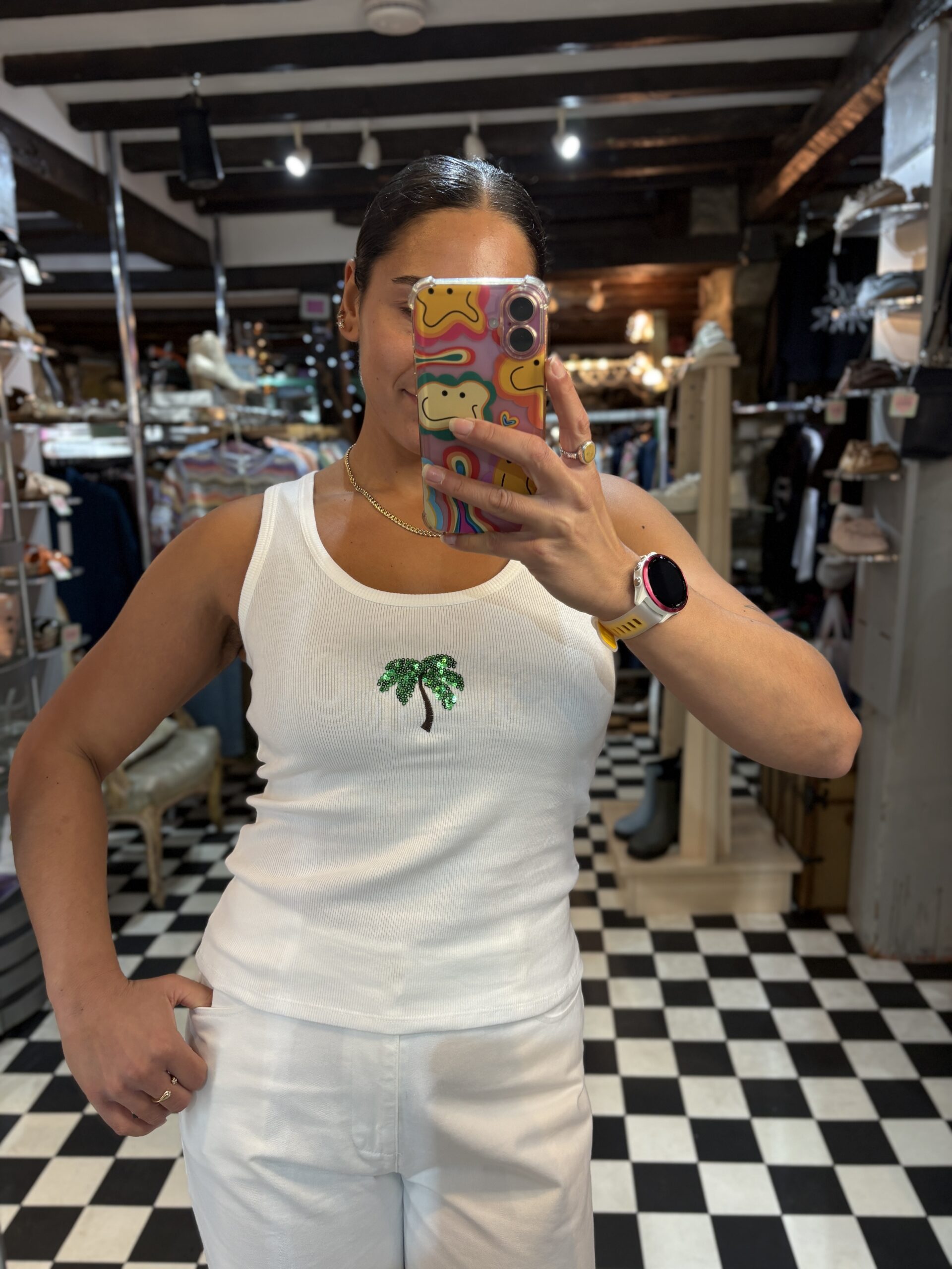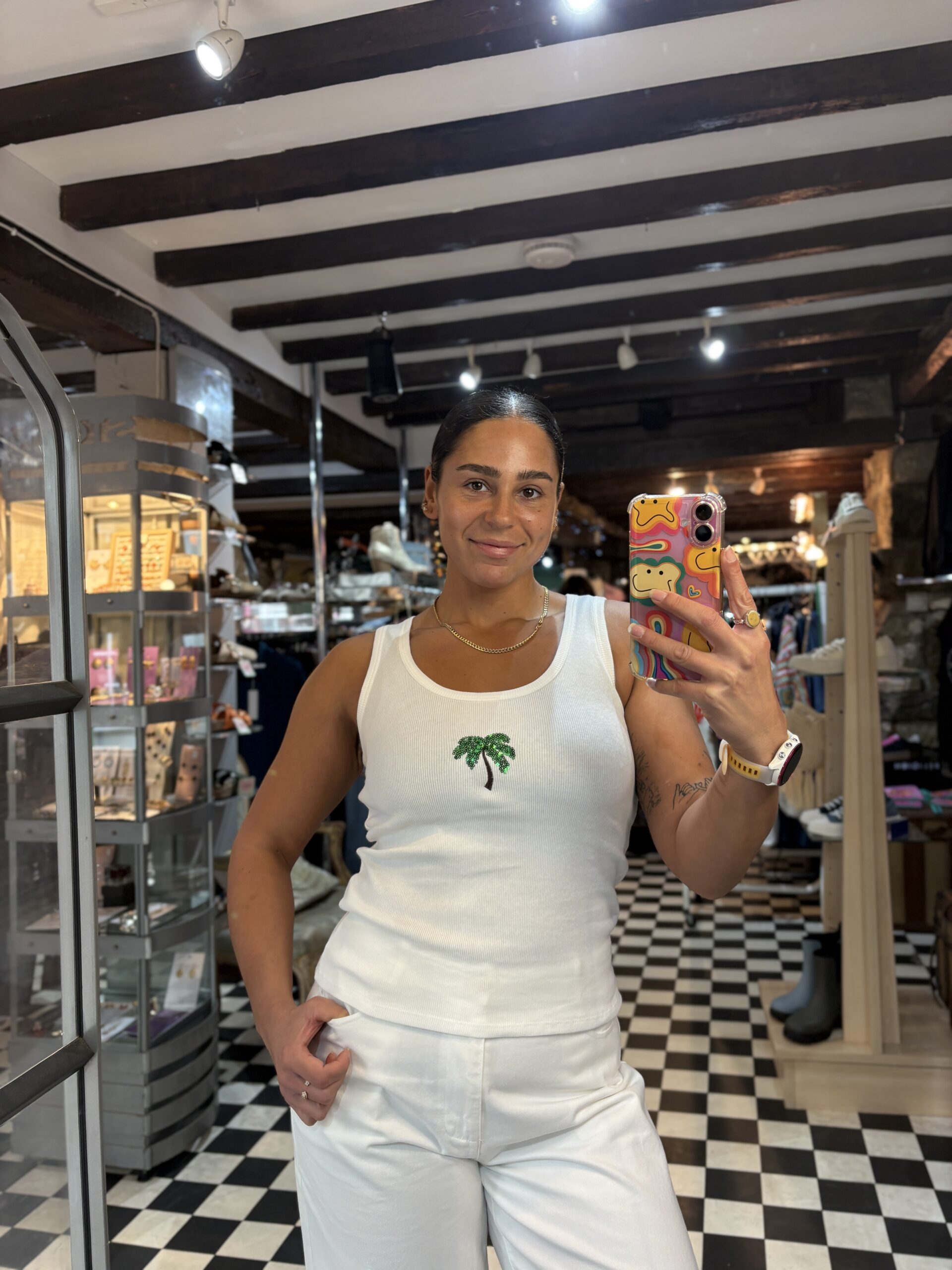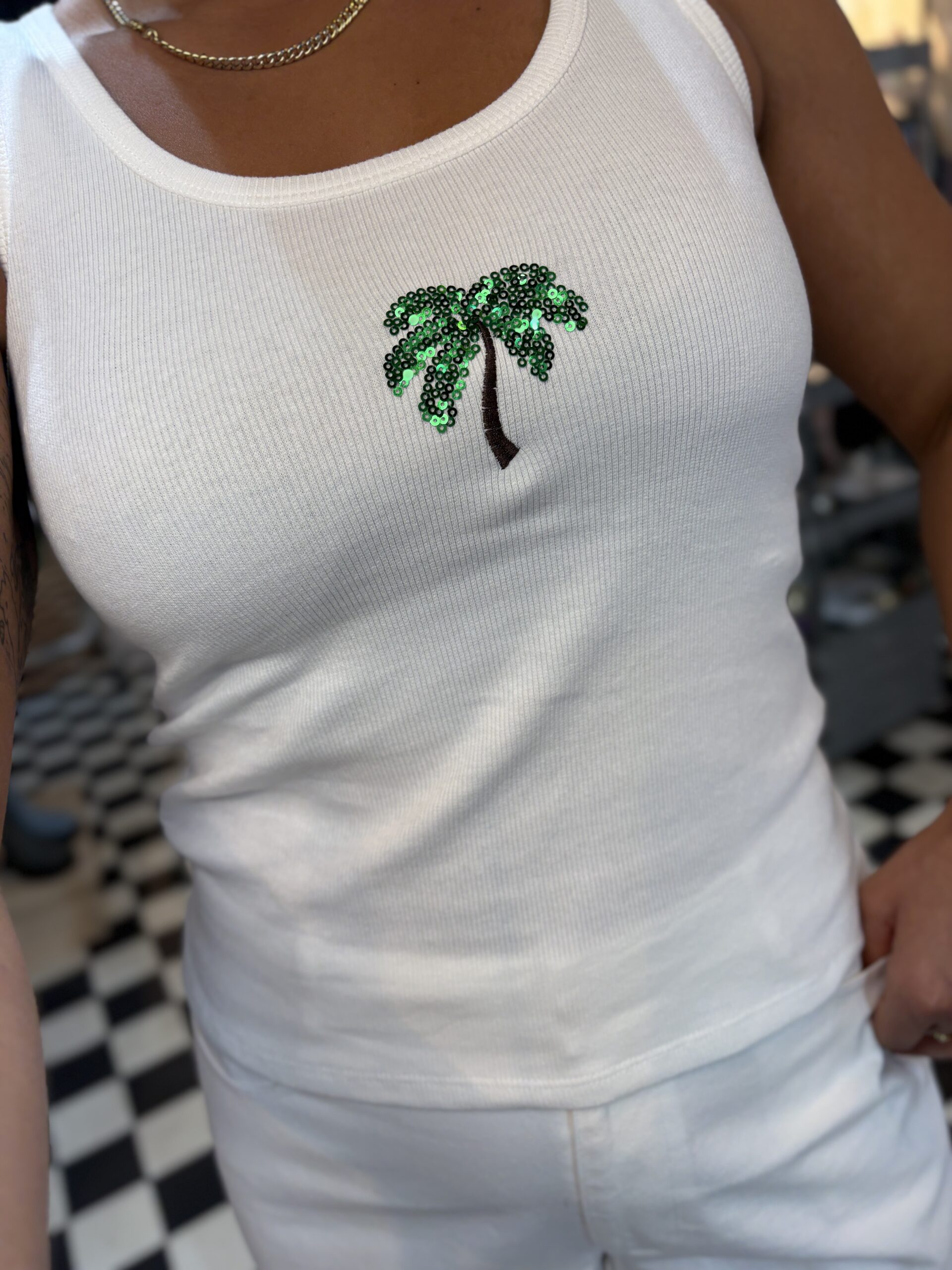 Ribbed Vest Top with Sequin Palm Tree