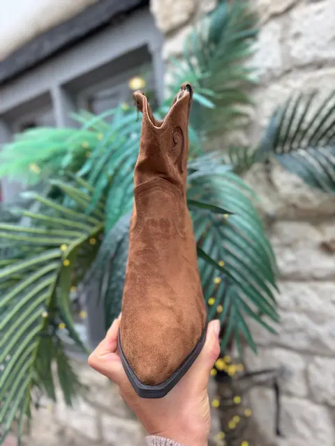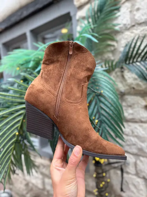 Classic cowboy style boot in a faux suede material. Not too long not too short, looks great with jeans, skirts, shorts you name it..