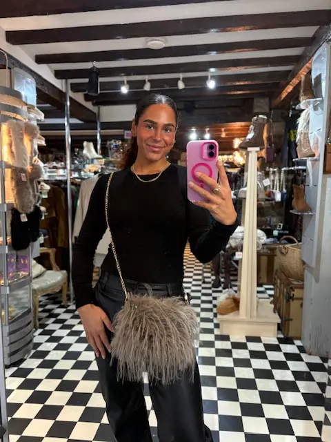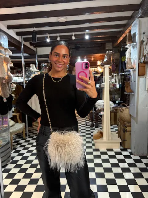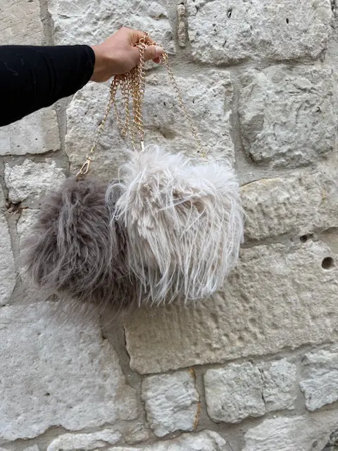 Cute little shaggy style fluffy bags perfect for nights out or any occasions and events. Long cross body chain. Small yet just big enough to fit your phone and essentials in.