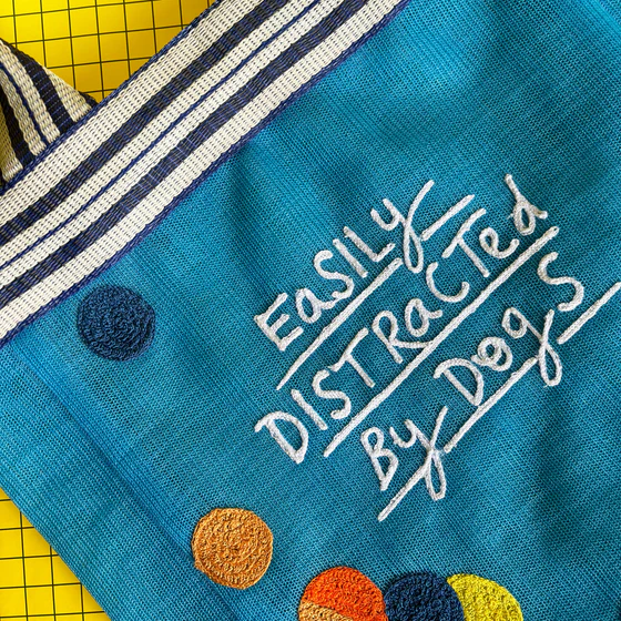Ever mid-conversation and then a doggo walks by? A little pupper? The bestest boy? A big woofer? Introducing the “Easily distracted by dogs” recycled shopper from Small Talk, the perfect bag to explain to your friend that you were absolutely listening, but there was a dog who you couldn’t ignore. This relatable little shopper is made from gunny, a material that is used for cement sacks. After they have fulfilled their use, these cement sacks are collected, washed, and melted down to plastic fibres, ready to start their life again on the weaving loom. The material is 100% recycled, and a perfect step towards being more environmentally-conscious. This handy bag is the perfect size for carrying dog treats, toys, and doggie bags!