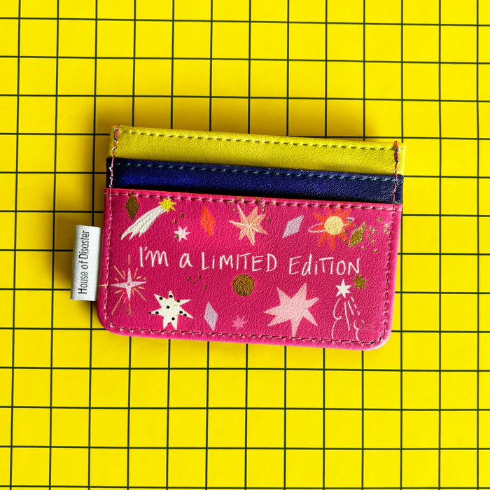 Features: Are you the kind of person who has imaginary arguments in their head (which you always win), speaks to animals you meet on the street, and sings their heart out to the car radio? Introducing the “I’m not weird, I’m a limited edition” cardholder, the perfect little holder to match your personality! Featuring 4 card slots, and a little space in the middle for coins or notes, this cardholder slides easily into bags or pockets. Perfect as a gift to *that* friend, or just as a little treat for yourself.