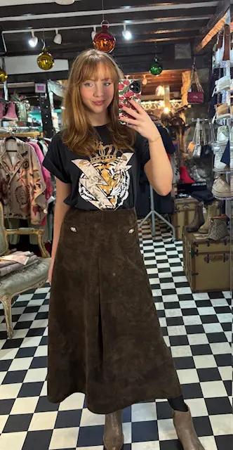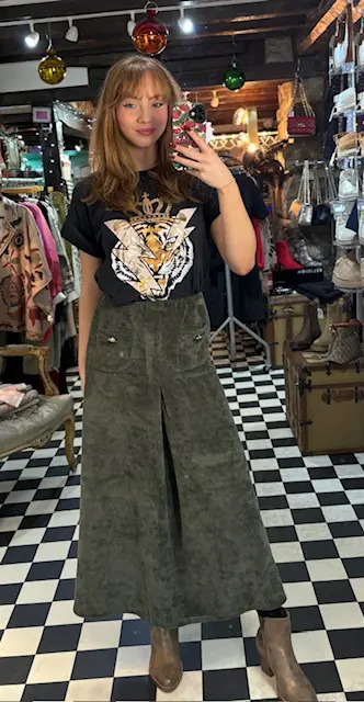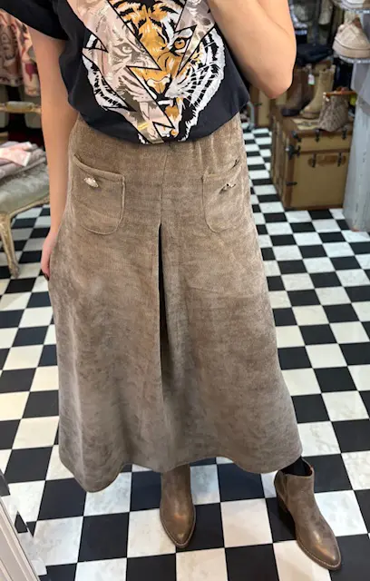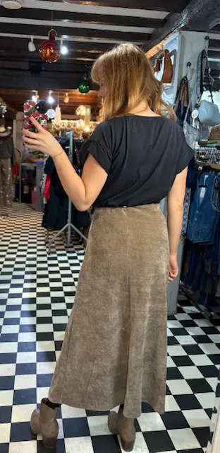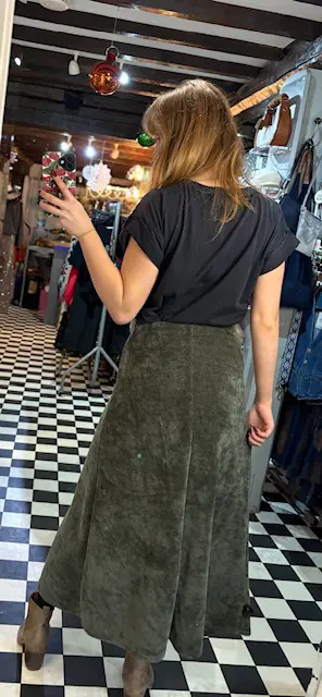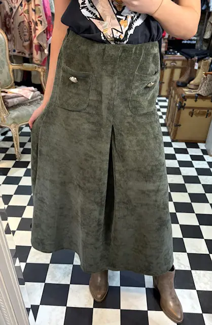 Beautiful maxi skirts have that soft touch feel. Elastic waist makes them super comfy. Feature a split. Gold finish buttons, can be dressed up or down.