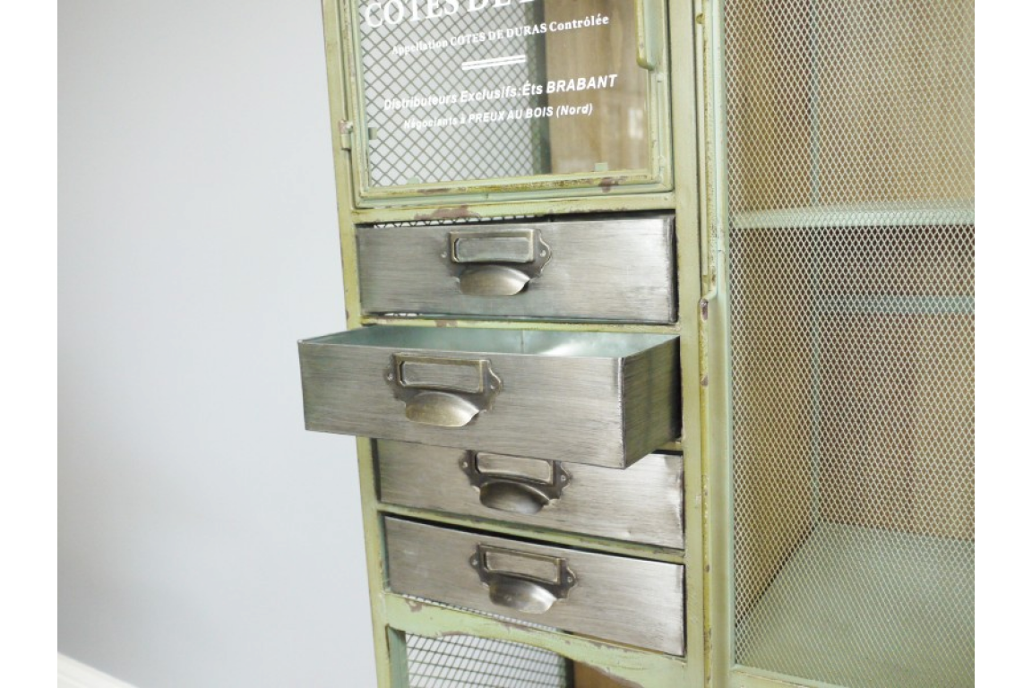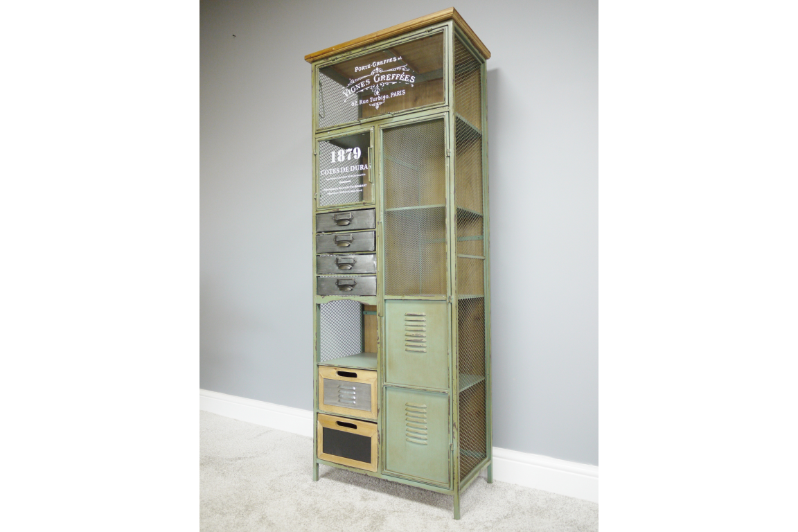 This Tall Industrial Cabinet is very decorative in a lovely Vintage green.