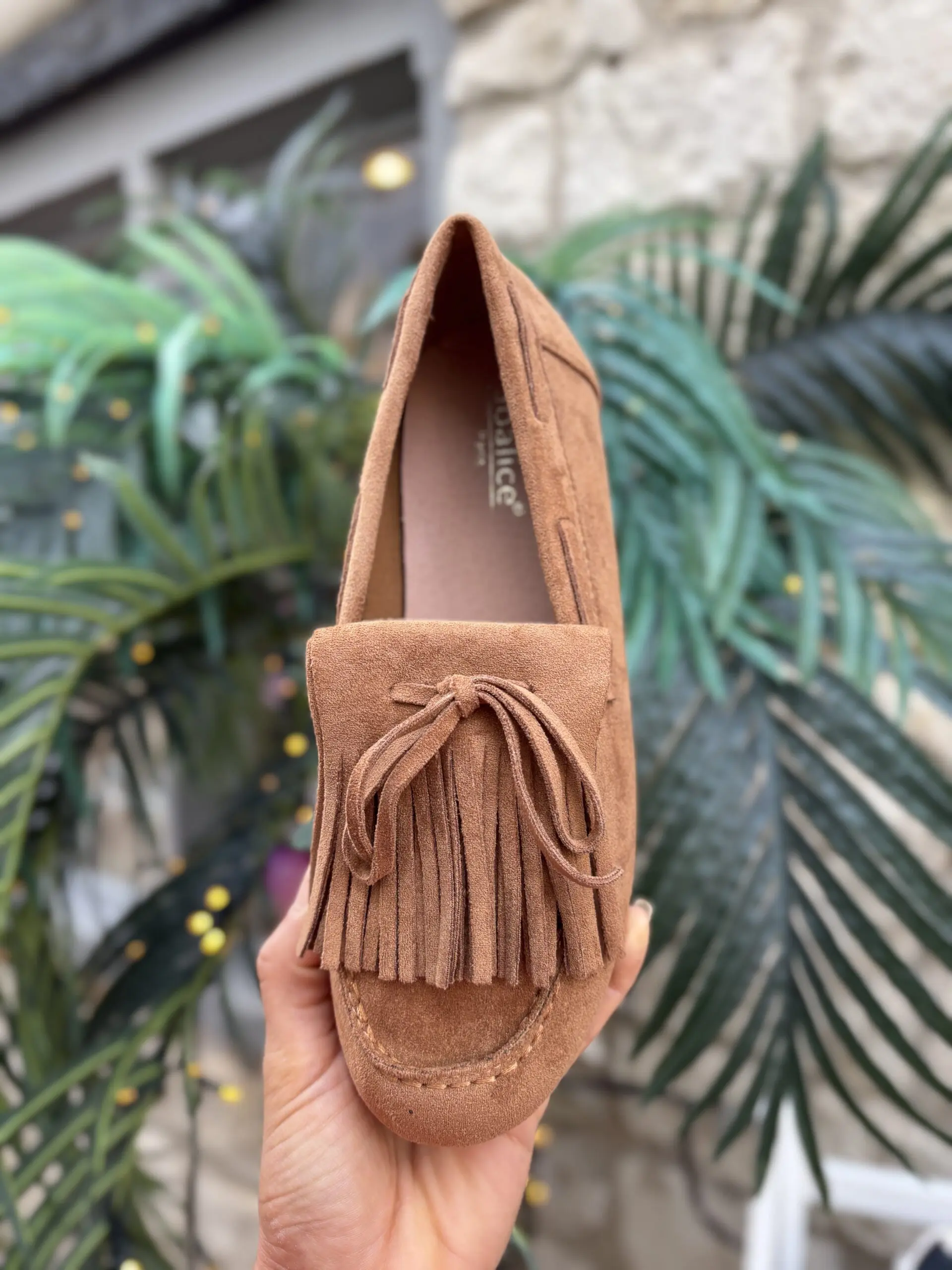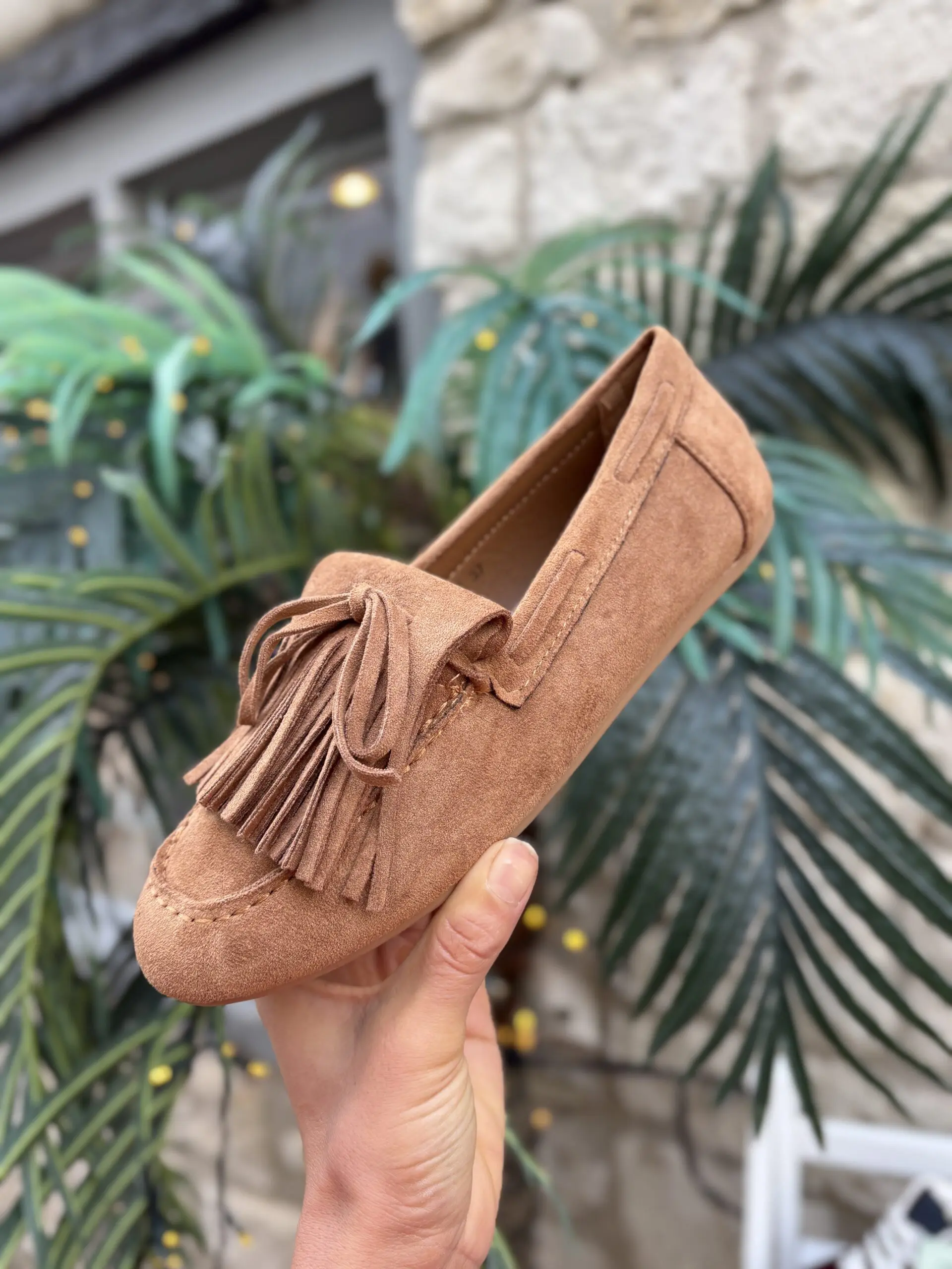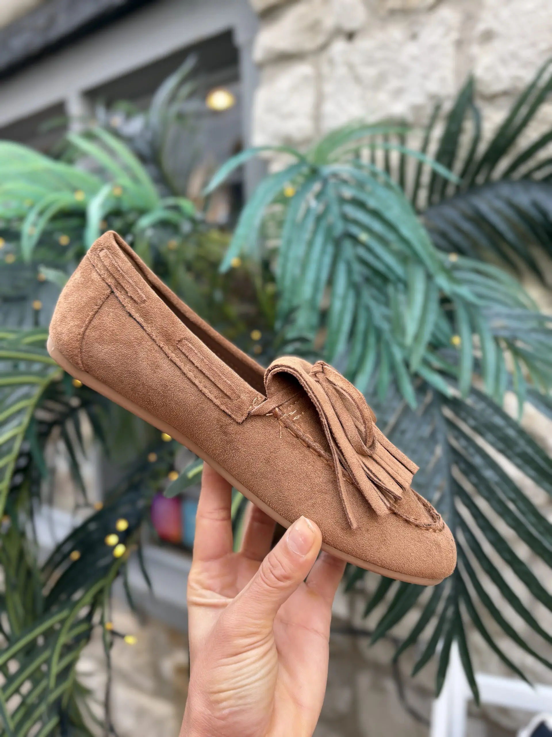 Cute new faux suede tassel tied moccasin slip on shoes perfect to transition into your spring wardrobe. These are a classic staple shoe style and so easy and comfy to wear.