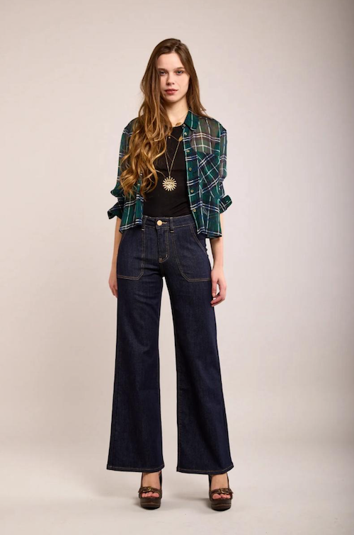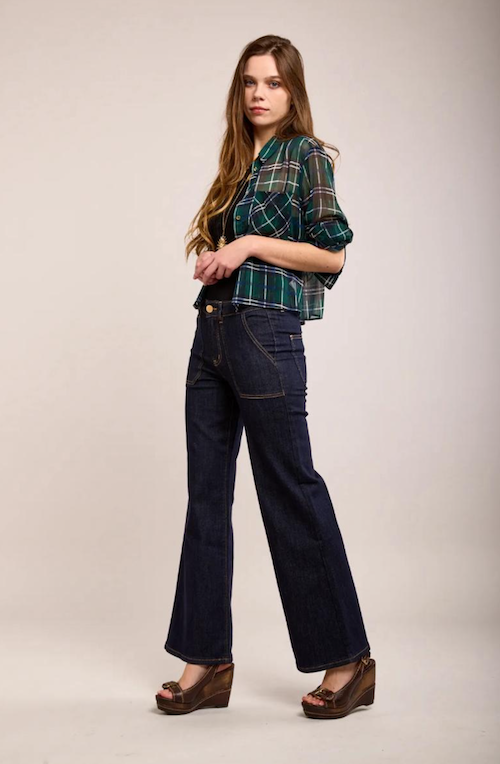 Toxic are renowned for their great fit and these are no different. Incredibly flattering wide leg style in a dark navy blue jean material. Large pocket detailing on the front and rear.