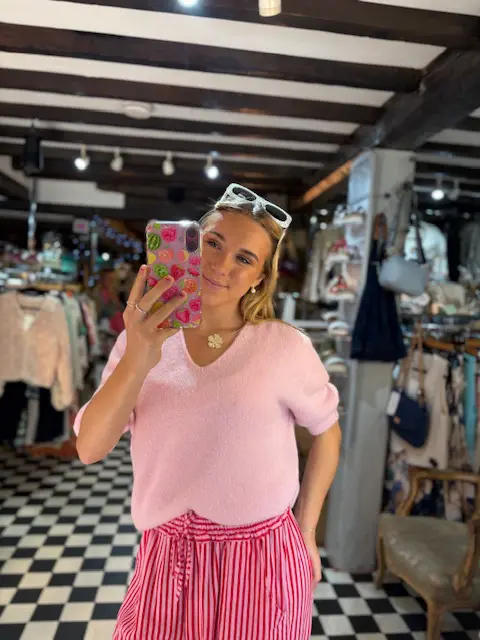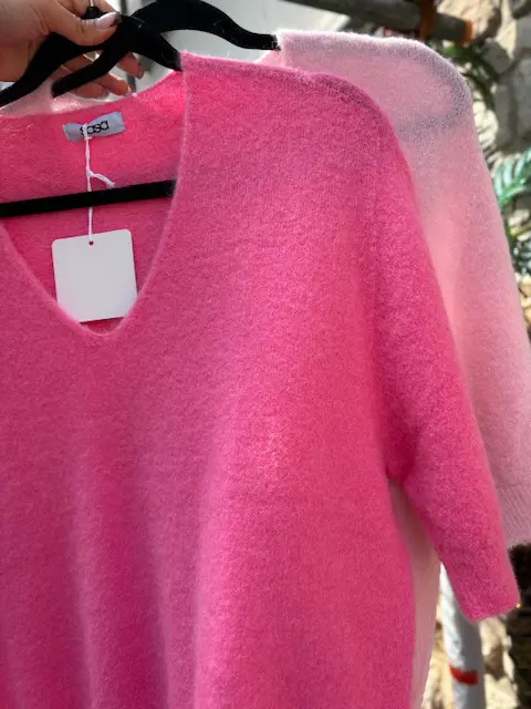 Our beloved super soft knit baby alpaca jumpers in a new style and 2 lovely shades of pink perfect to give you a little pop of colour. Lightweight enough to layer , great for those chilly summer evenings.