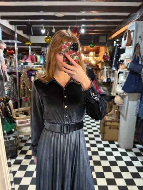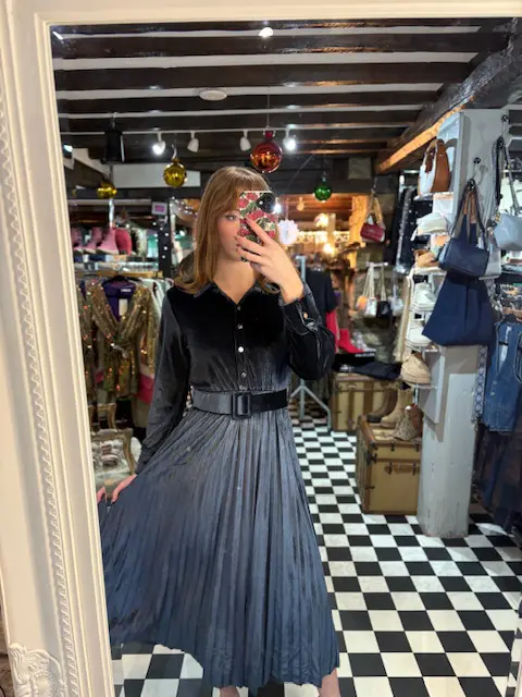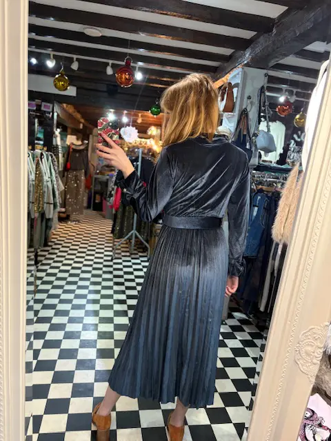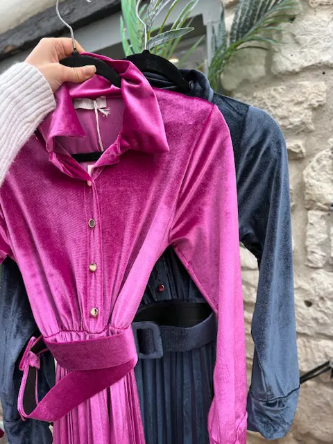 Gorgeous new velvet / velour pleated dresses. Include a belt. Can be dressed up or down, comfortable soft and easy fit.