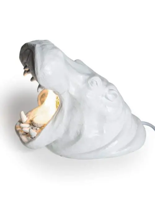 WHITE ROARING HIPPO TABLE LAMP