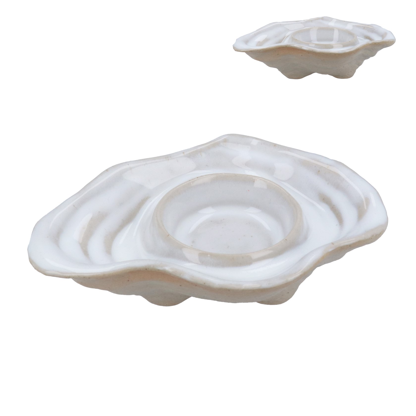 White Stoneware Oyster T-Light Holder