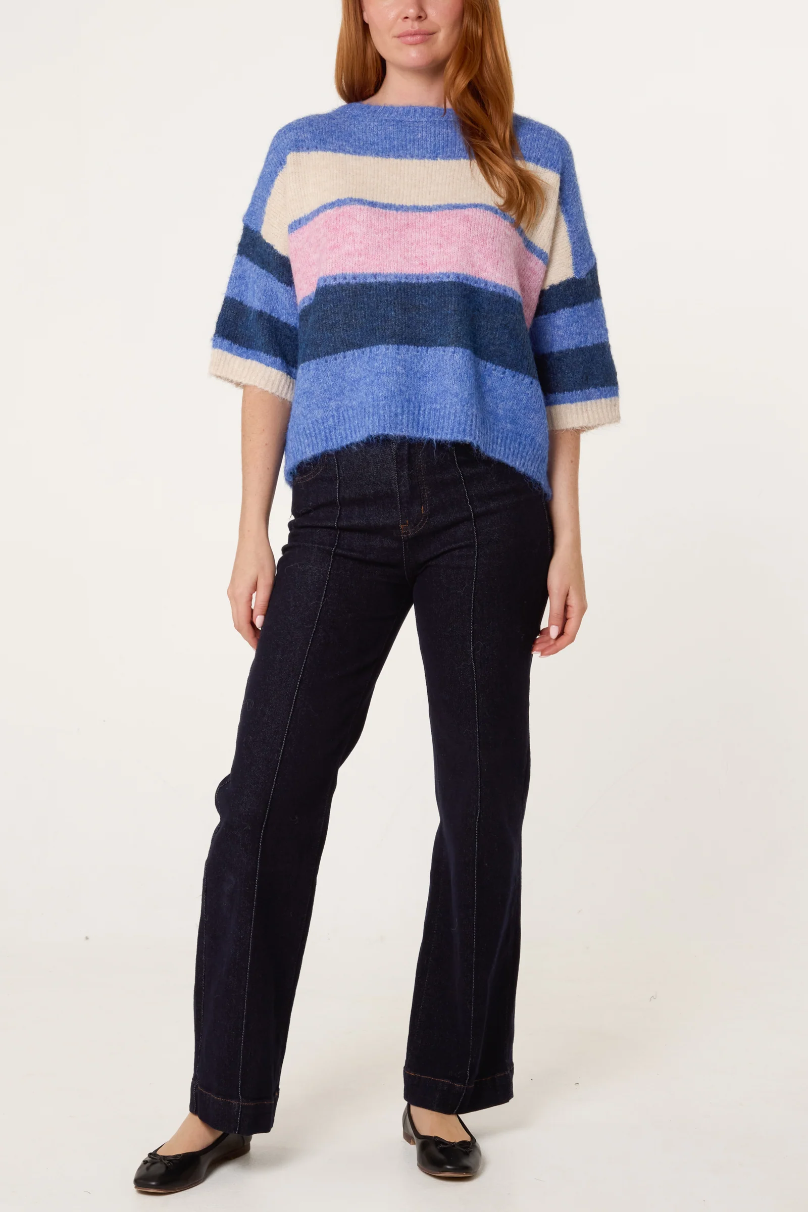 Beautiful new colour block jumper in some fresh and fun spring colours. Soft knit and easy to wear.