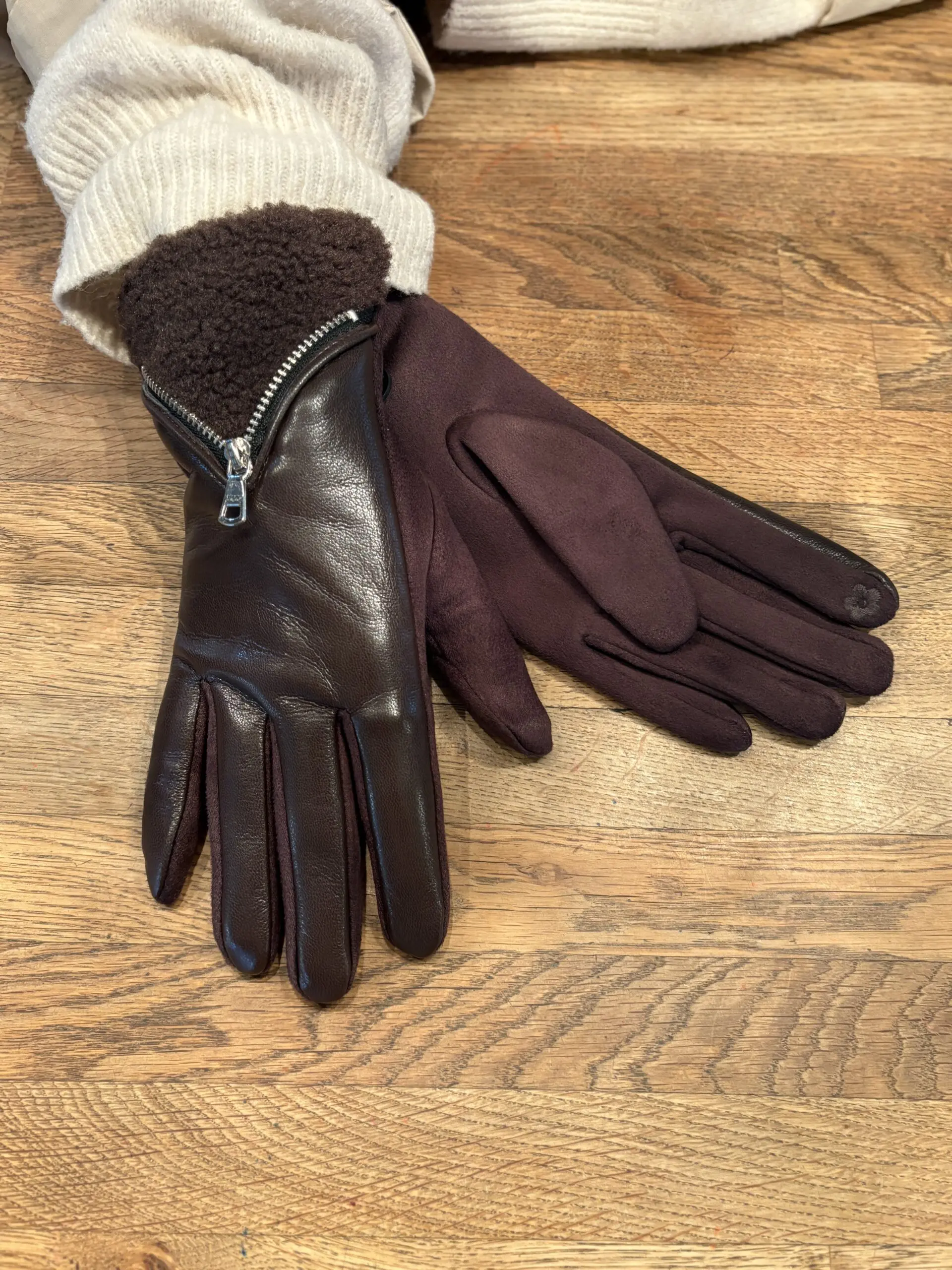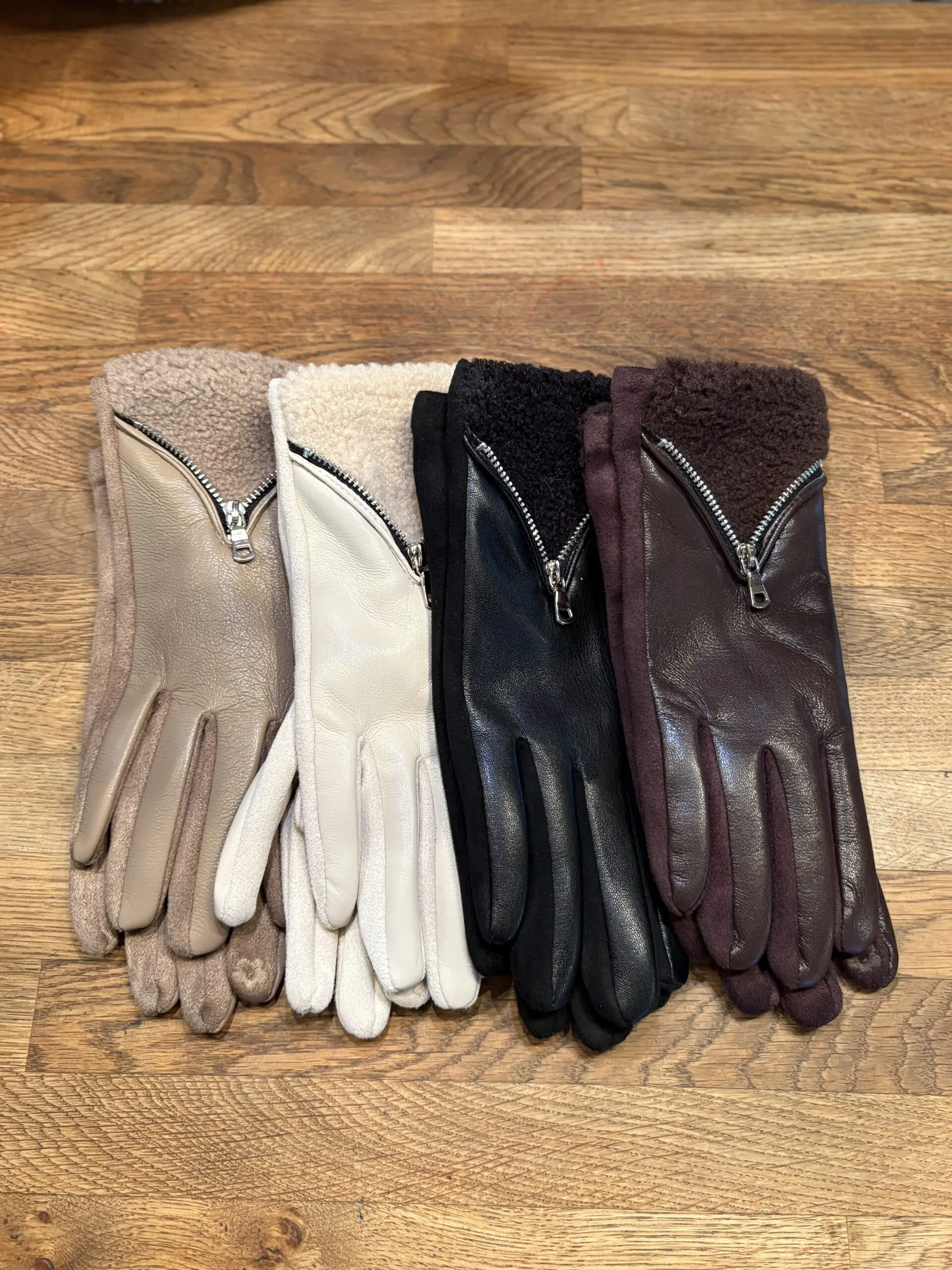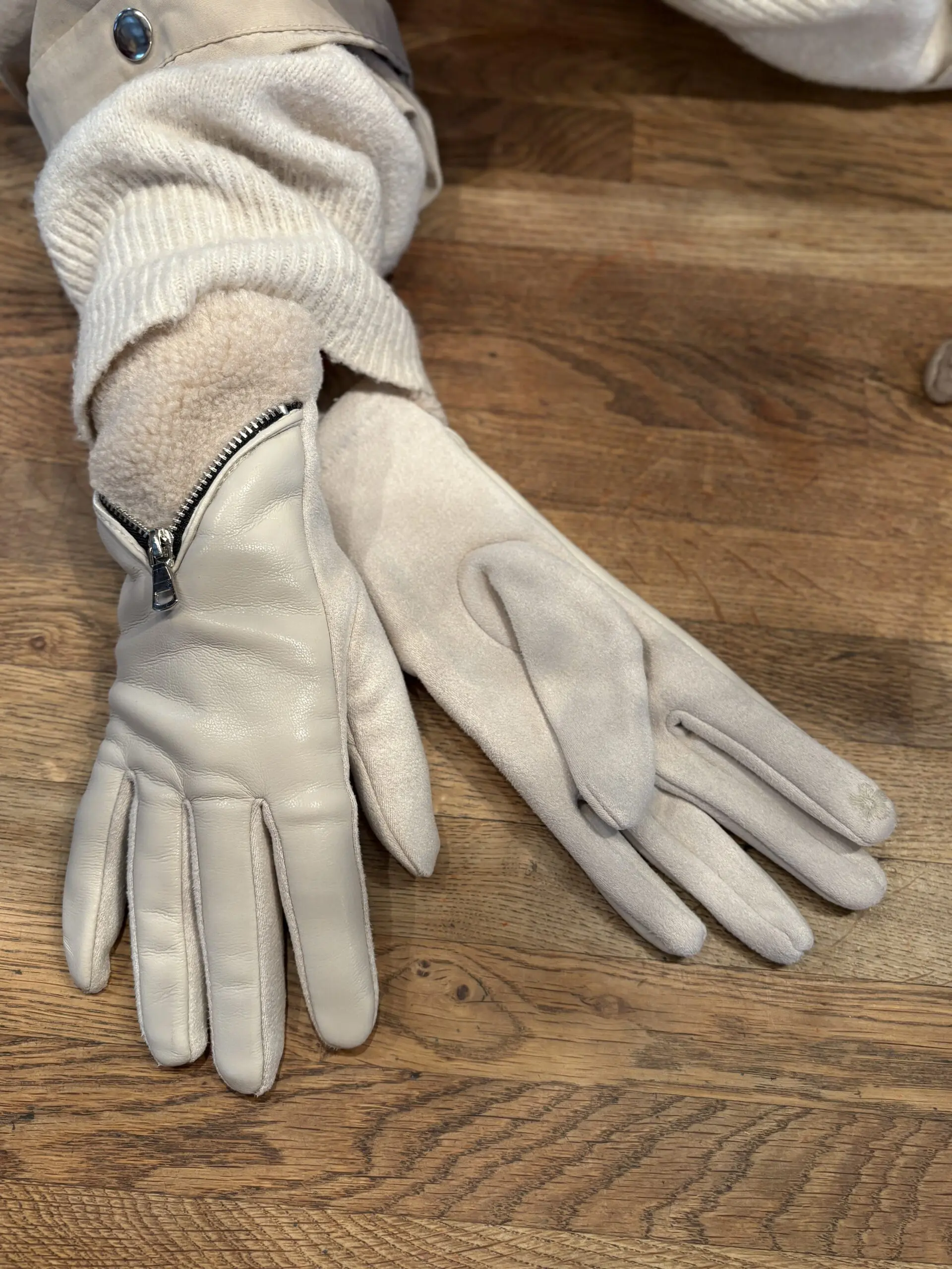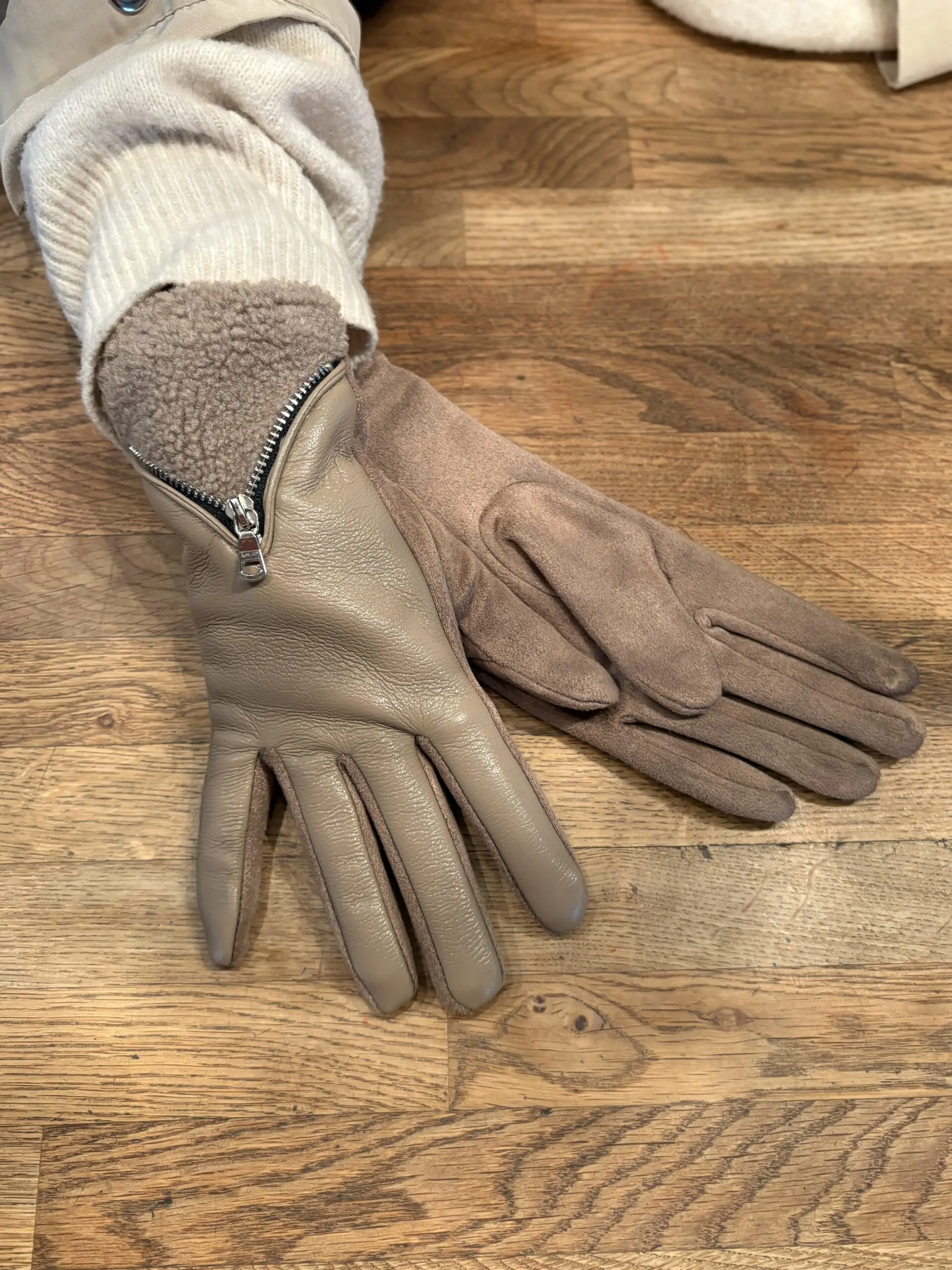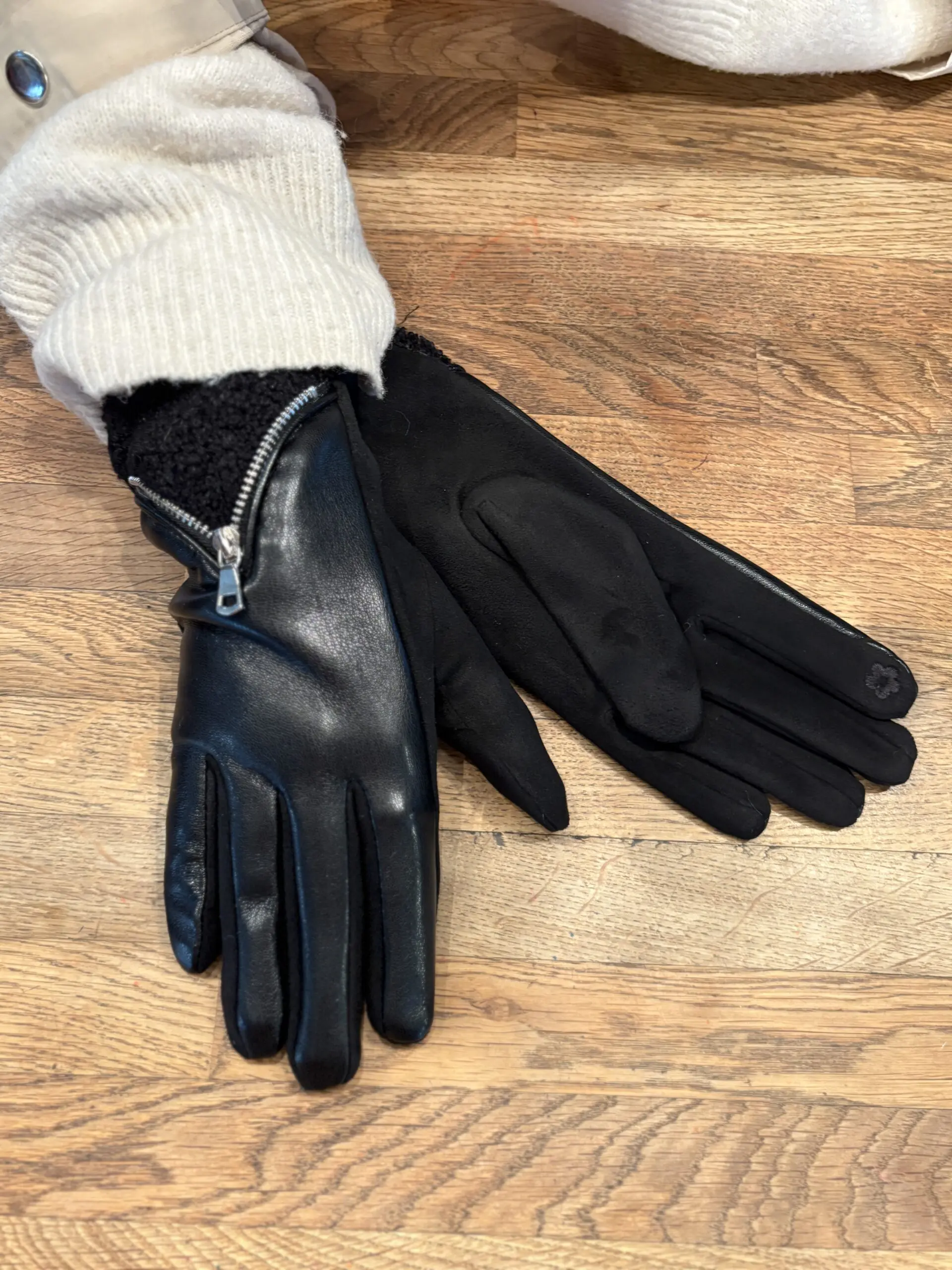 Stylish new gloves with zip and faux leather detail. Perfect for those colder days.